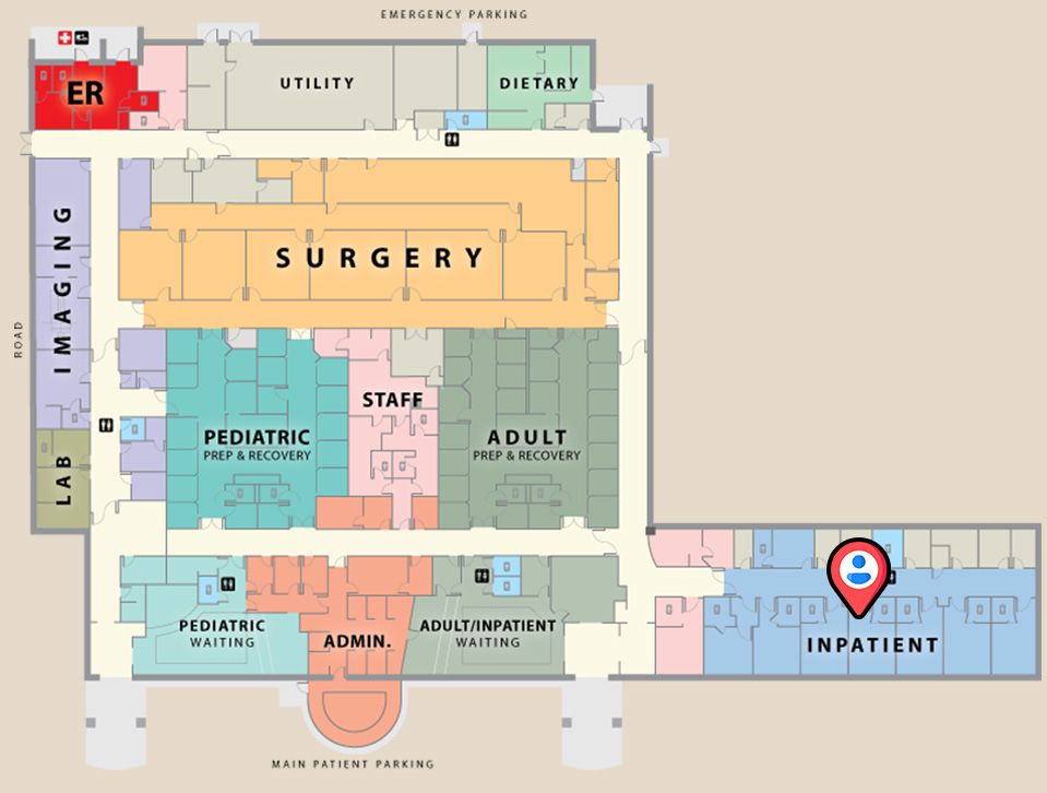 You follow the new nurse through the hospital halls and you take mental notes of the exits and wings, you pass the pediatric, the staff, the administration, the adult recovery wing, and finally, after a long corridor, you reach the inpatient wing.