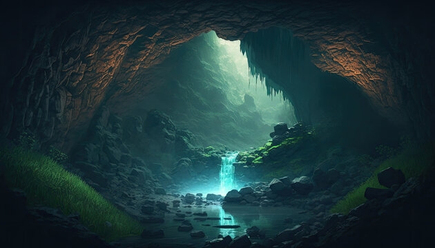 You move through the main cavern and you find a small subterranean stream.