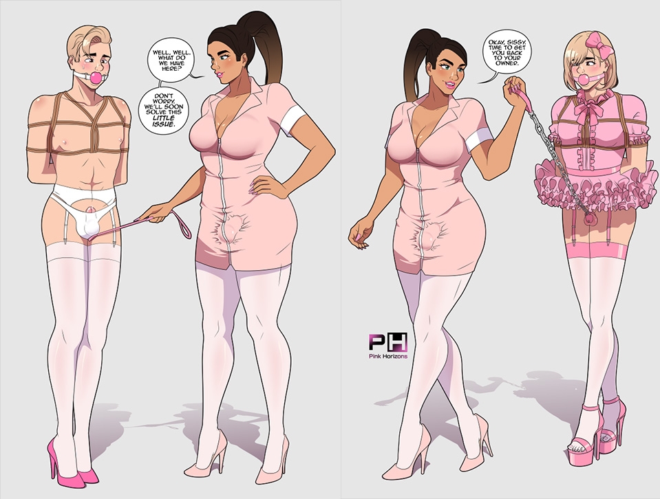 Some nights, during the weekends, you have a special play. She makes you dress like a girl and makes you wear a chastity cage, you serve her, and finally, she uses a vibrator on your cock when your ass is full with a dildo inside. You are about to cum, begging her to stop... and she says "Shut up whore" and you explode with a fantastic orgasm.