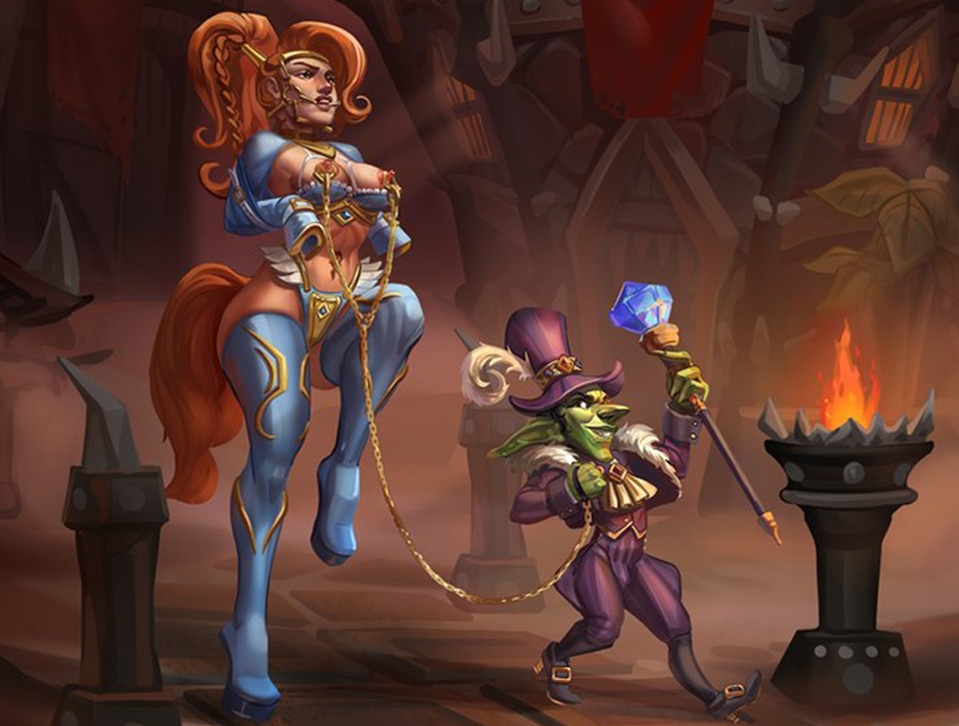 When you wake up, you can't move freely, something is wrong. Your hands are bound inside stiff hoof-gloves and you are wearing heavy boots with hoofs. A bridle digs into your cheeks, and mouth the metal bit pressing your tongue down as goblins cackle and adjust the reins. They’ve dressed you in blue and golden colors, they arranges your hair with a ponytail but you feel a terrible pain in your butt and nipples.