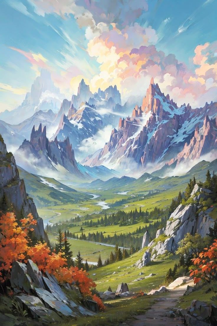 The Colossal Mountains of Ash... The peaks rise like stone titans reaching the sky. And beyond them, the volcanoes...