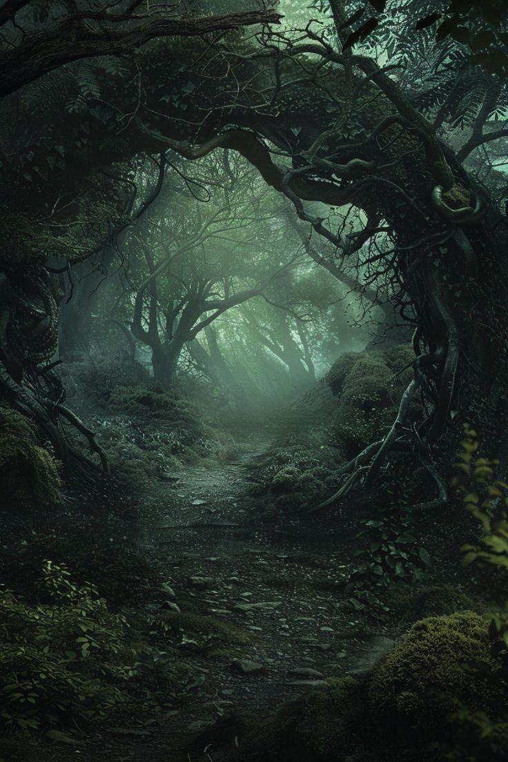 You travel through the Dark Forest you look at the darkened trees, their trunks are twisted together and their bark is blackened. The sunlight is scarce, swallowed by the canopy above, and after a few hours, you find a glade with a pond, however, you listen to a noise, something is close to you... Your magic is ready, this creature will not surprise you.