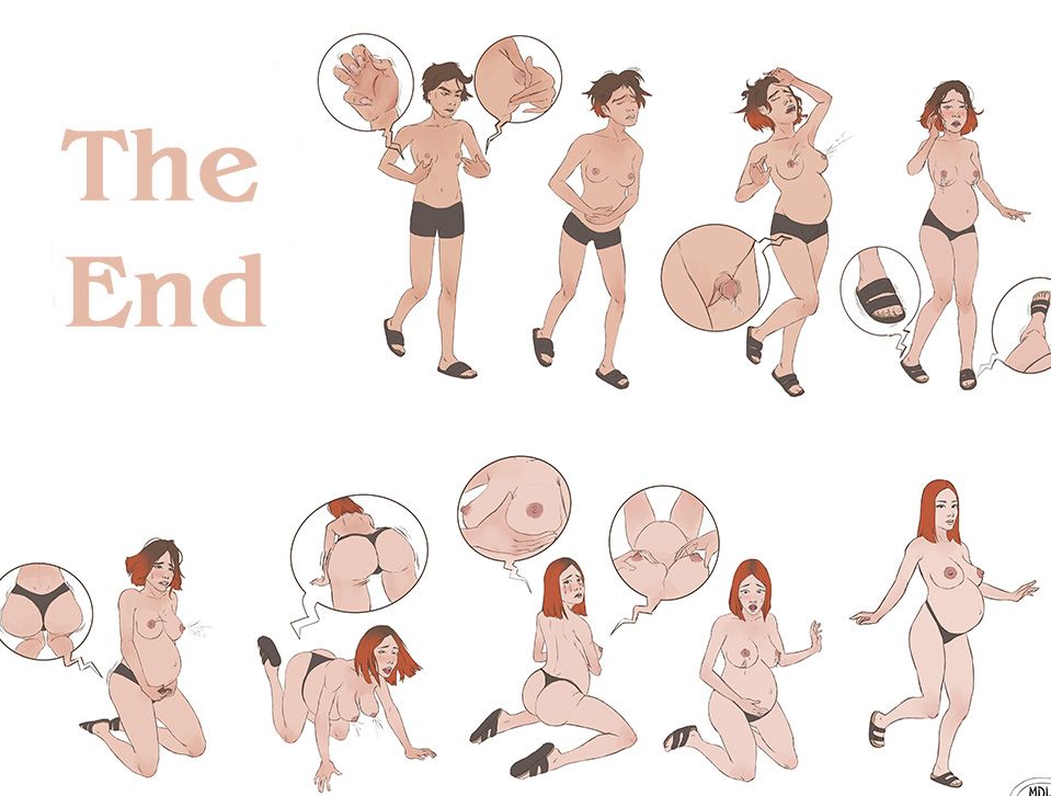 You feel weird, your whole body hurts, your vision is blurred, your breasts hurt... they are growing, you belly is swollen, your intimate parts hurt as hell, and you start to leak milk from your nipples. With horror, you fall on your knees, and you hold your heavy belly, your butt starts to change, your hair... your cry, suffering a traumatic experience.